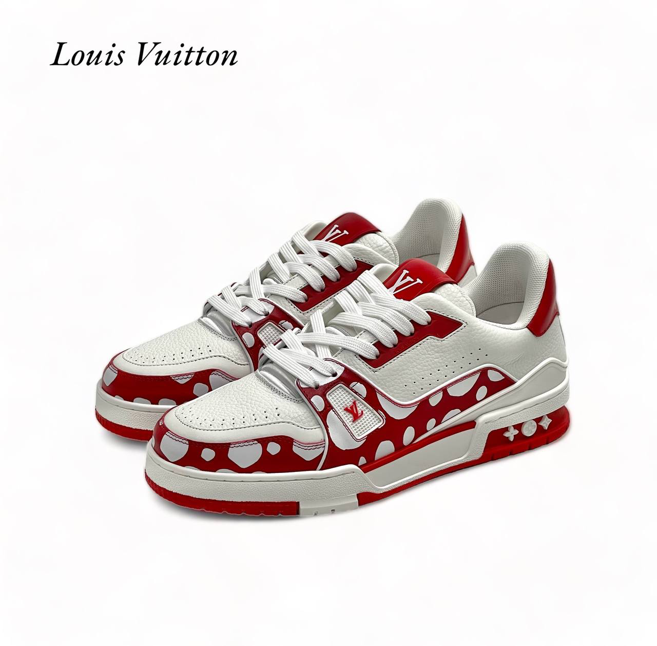 LV тренеры бело-красные далматинец большой белый лого на язычке пятна белые