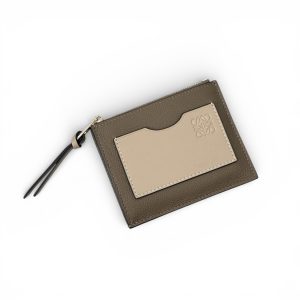 LOEWE визитница на молнии коричневая с бежевым карманом