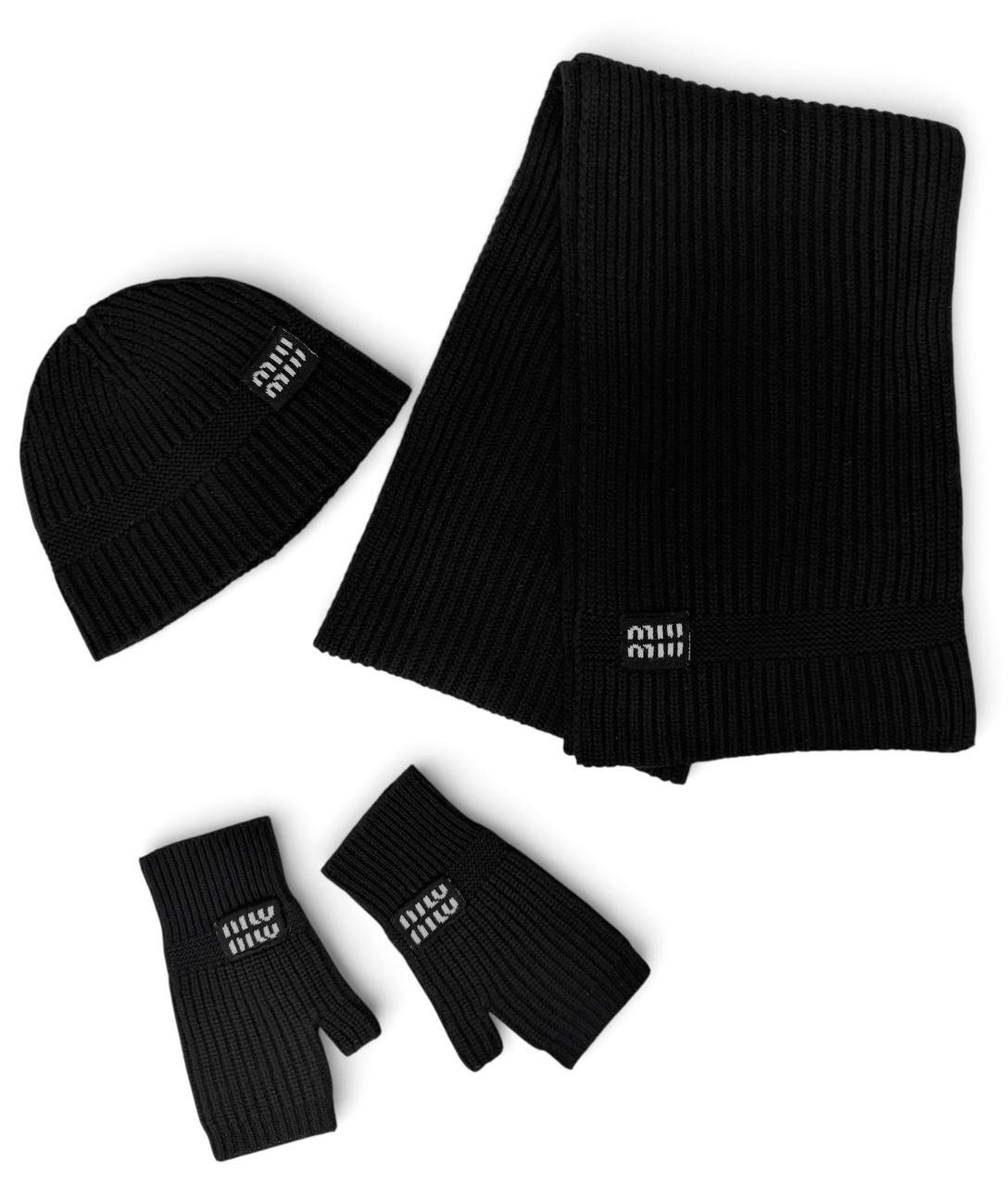 MIU MIU комплект шапка шарф и варежки вязаный черный