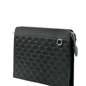 LV борсетка Voyage кожа шашка черная с ручкой