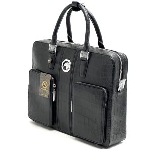 BV портфель теленок 2 кармана на кнопках по бокам черный