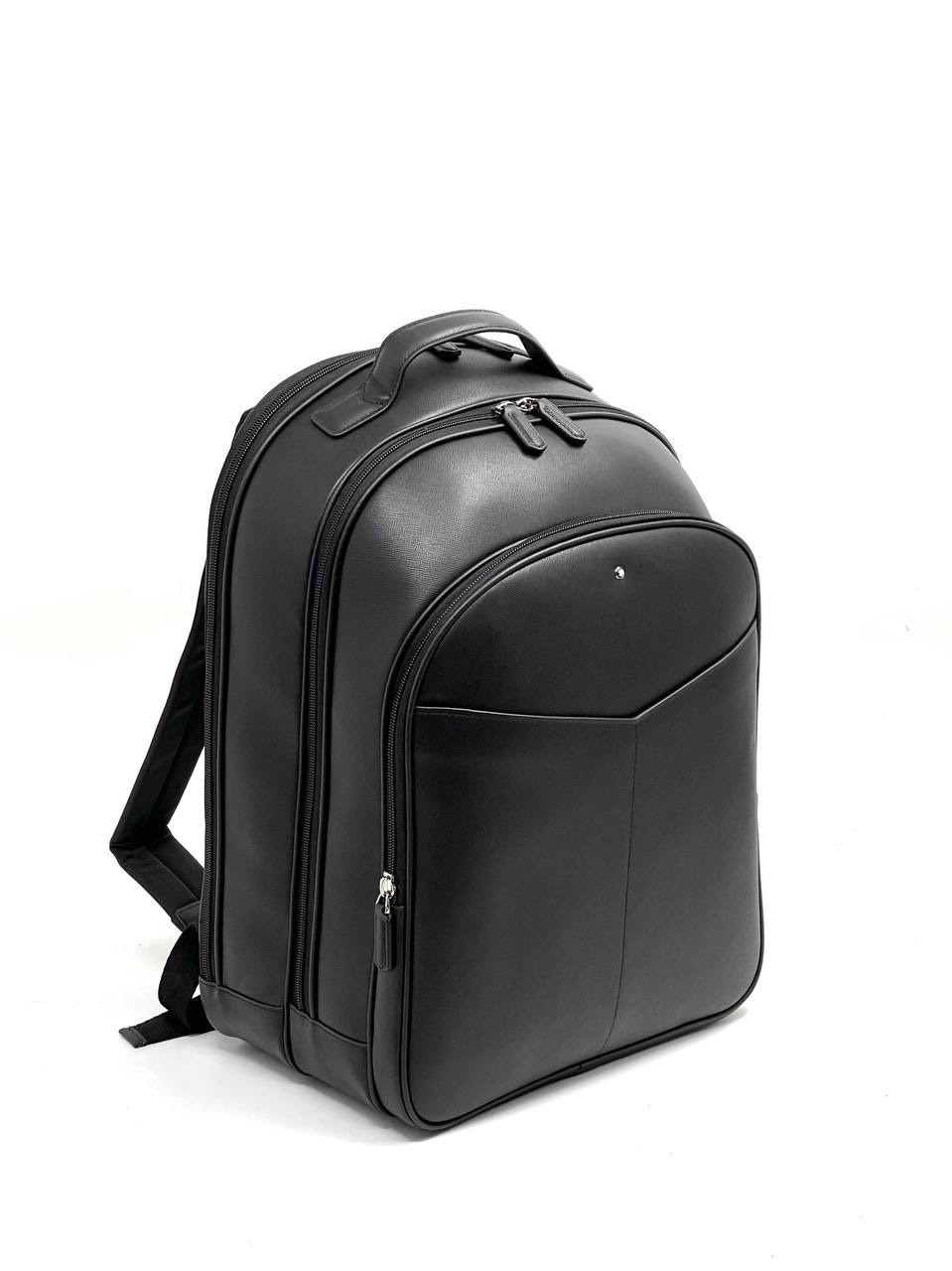 MONTBLANC рюкзак из черной гладкой кожи с двумя большими отделениями и большим карманом на молнии