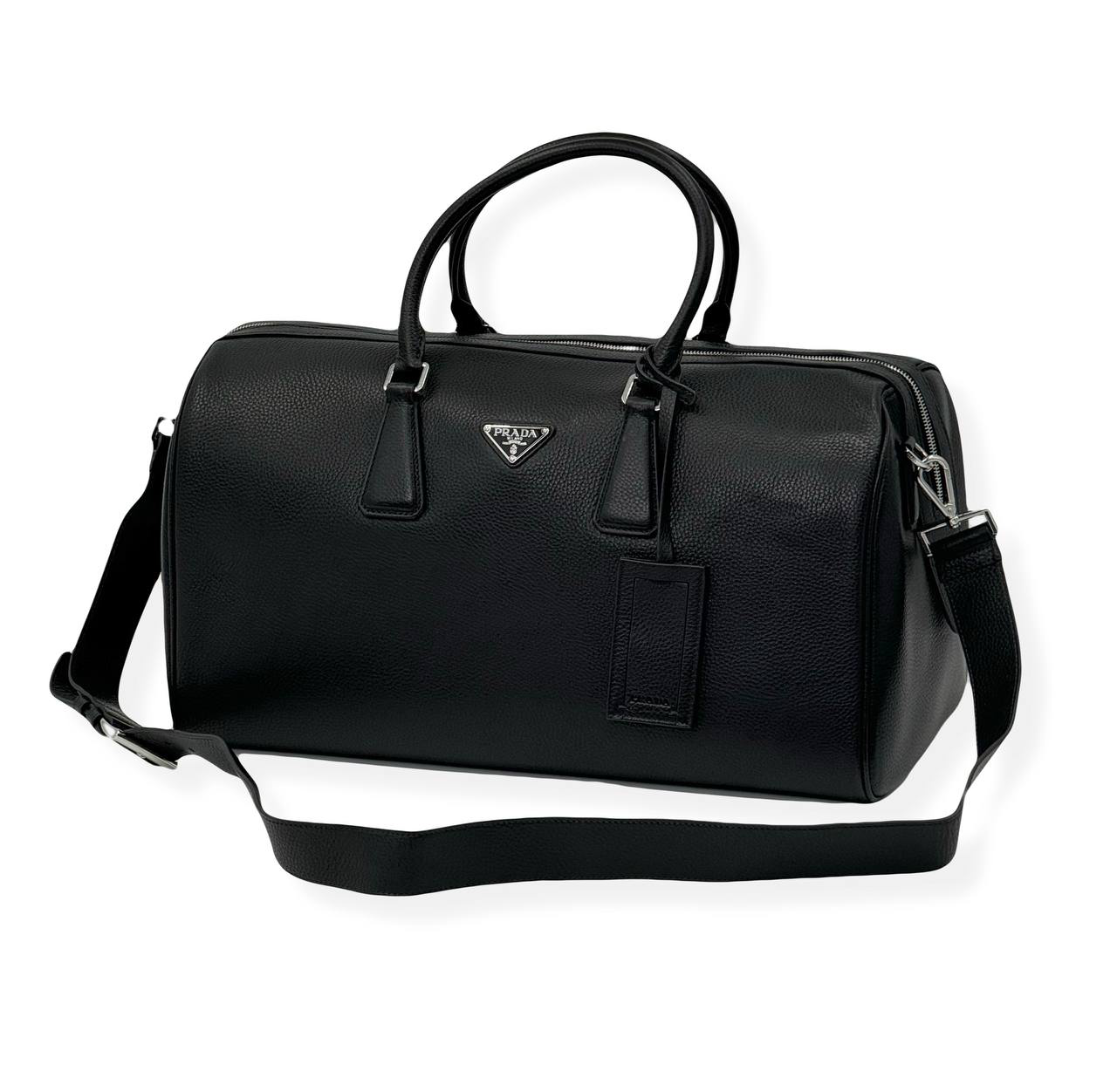 PRADA дорожная сумка кожа того черного цвета с металлическим логотипом