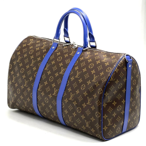 LV дорожная сумка KEEPALL 50 канва коричневая монограмма с отделкой из синей кожи