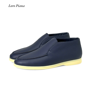 LORO PIANA лоферы низкие вельветовая ткань синие с белой подошвой