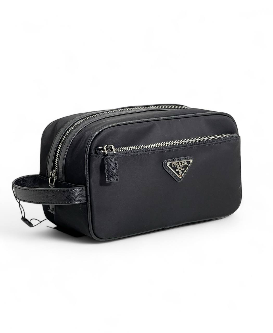 PRADA несессер черный из нейлона с наружными карманами на молнии
