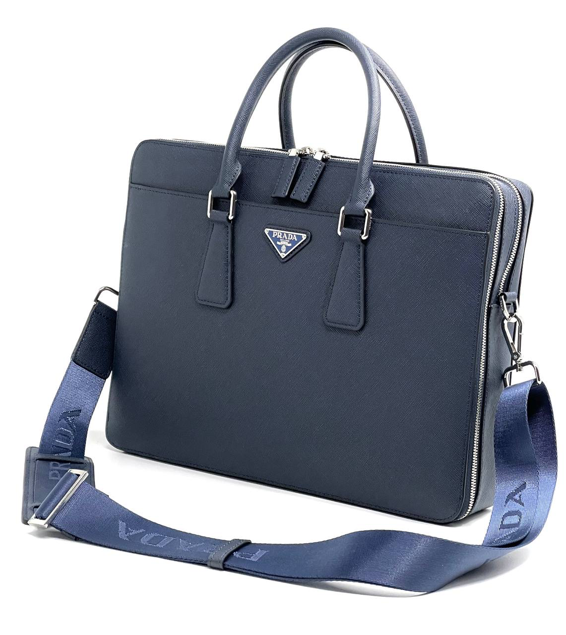PRADA портфель кожа софьяно мягкий синий с двумя молниями