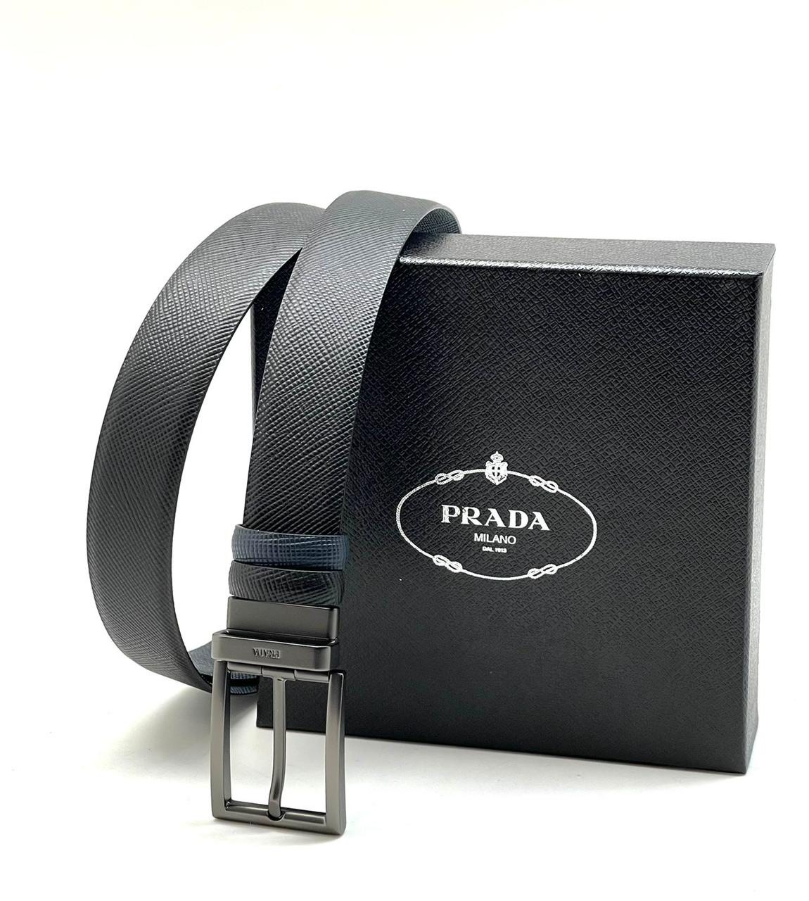 PRADA ремень брючный двухсторонний кожа эпсом черно-синий пряжка классика черная