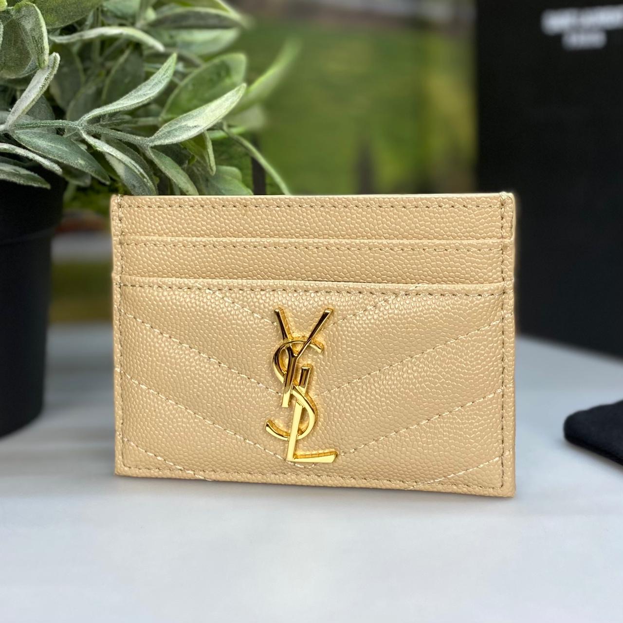SL визитница 4 кармана бежевая кожа CAVIAR логотип YSL золото