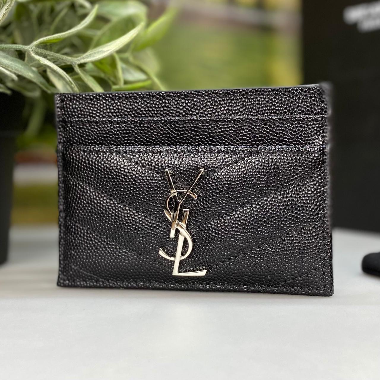 SL визитница 4 кармана черная кожа CAVIAR логотип YSL золото
