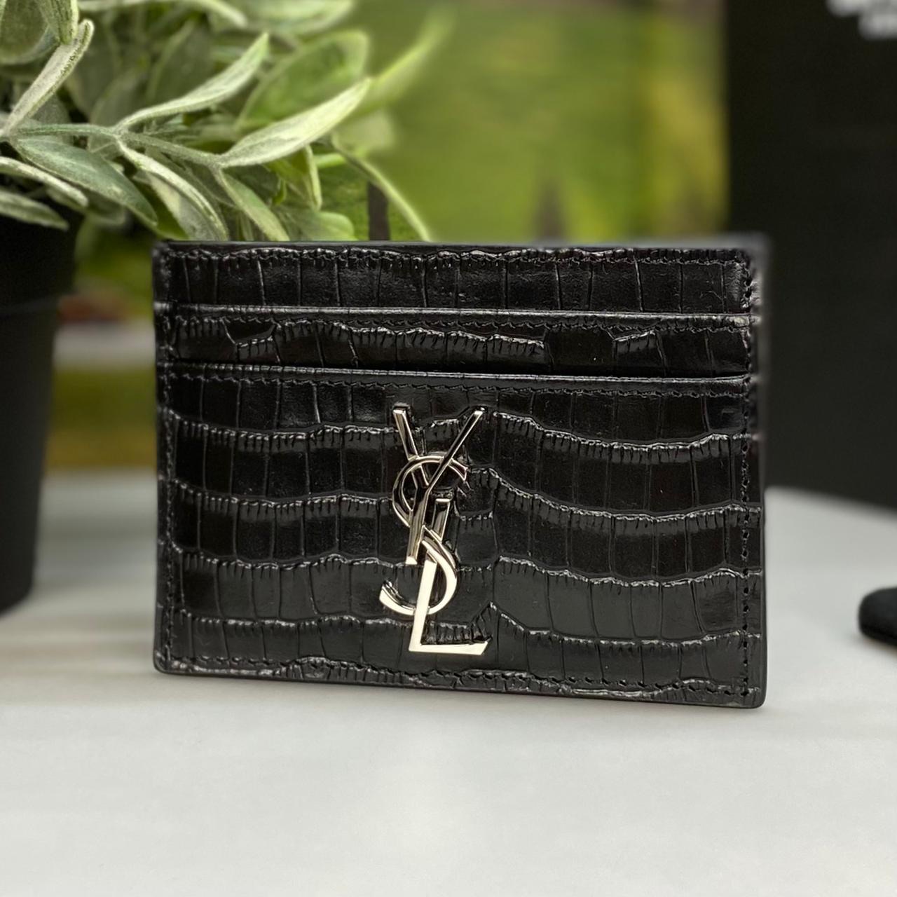 SL визитница 4 кармана черная тисненная кожа под крокодила логотип YSL серебро