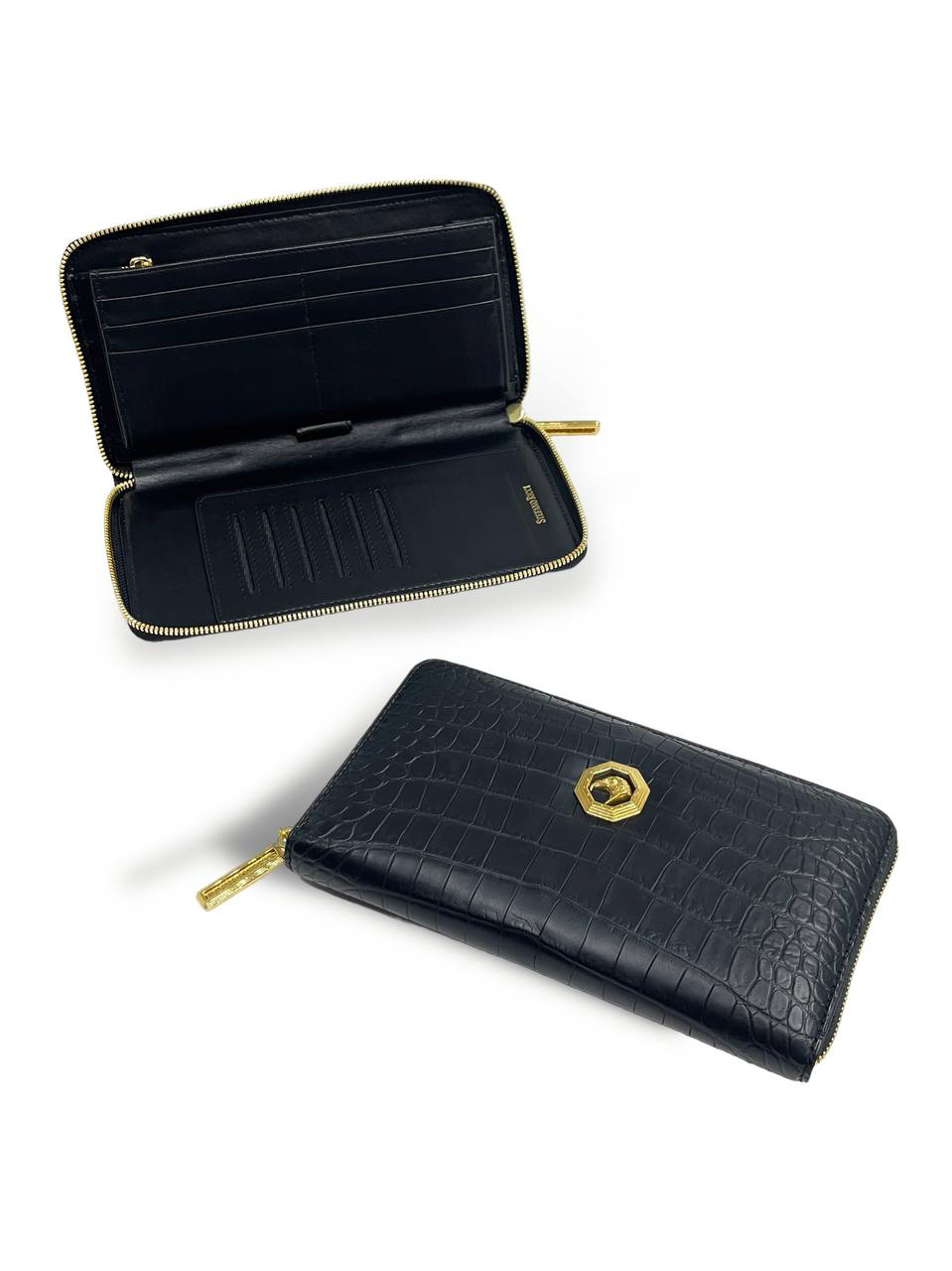 SR кошелек крокодил большой с ремешком черный фурнитура золото