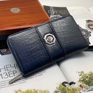 SR кошелек крокодил синий на двух молниях с ручкой сверху с новой фурнитурой серебро
