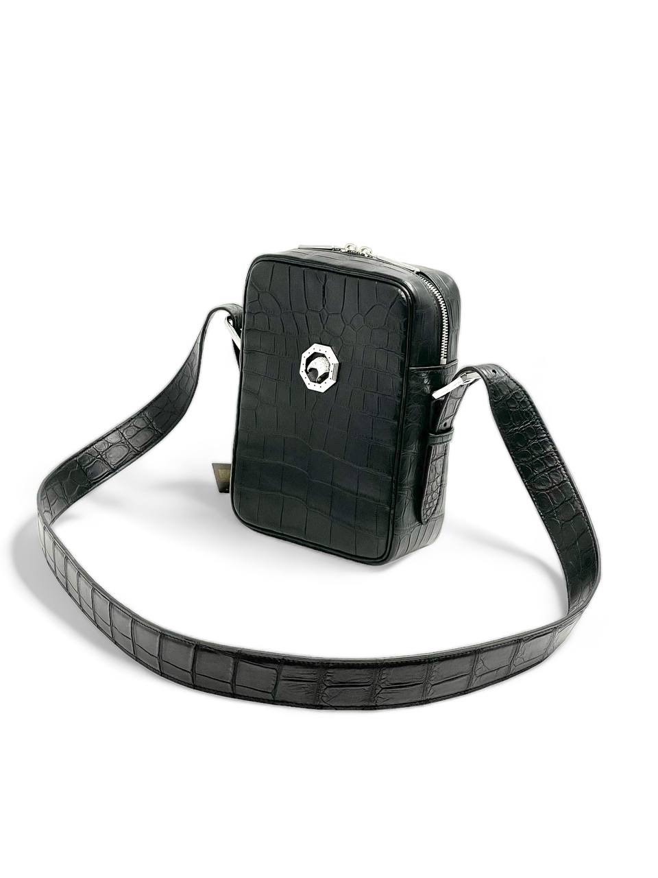 ZILLI мессенджер черная из кожи крокодила логотип серебро