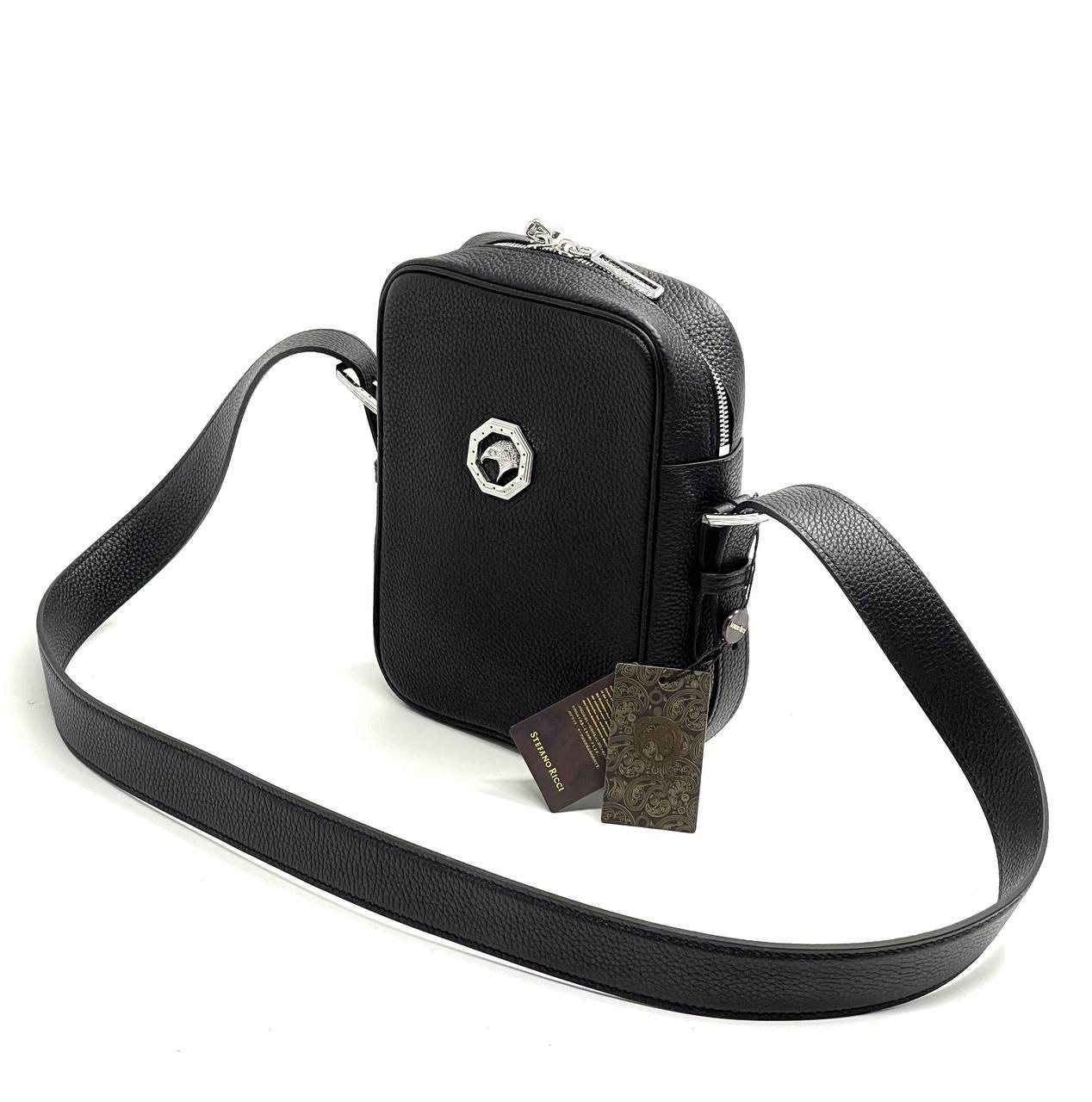 SR мессенджер черный, кожа того, белая фурнитура