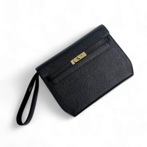 HERMES борсетка с двумя вариантами ремешков кожа эпсом черная замок Kelly золото