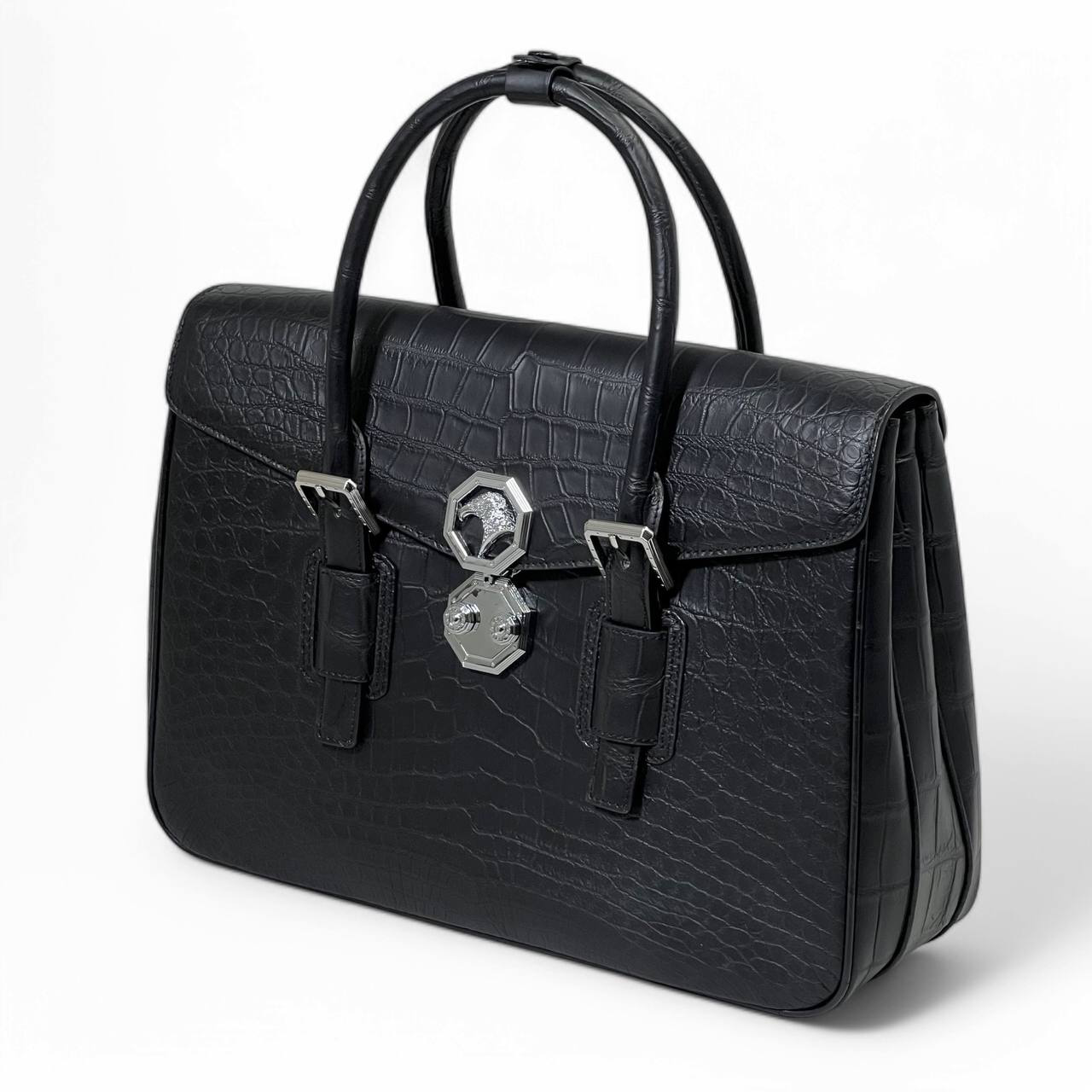 SR портфель крокодил ручки с пряжками с клапаном черный