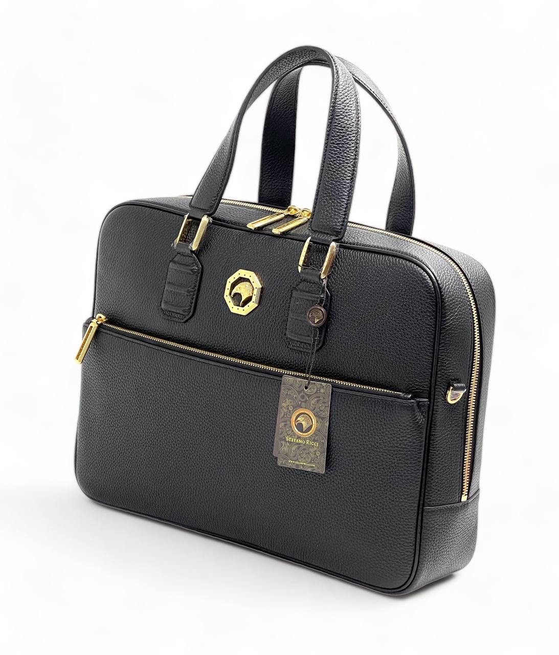 SR портфель в черной коже того с большим карманом на молнии фурнитура золото