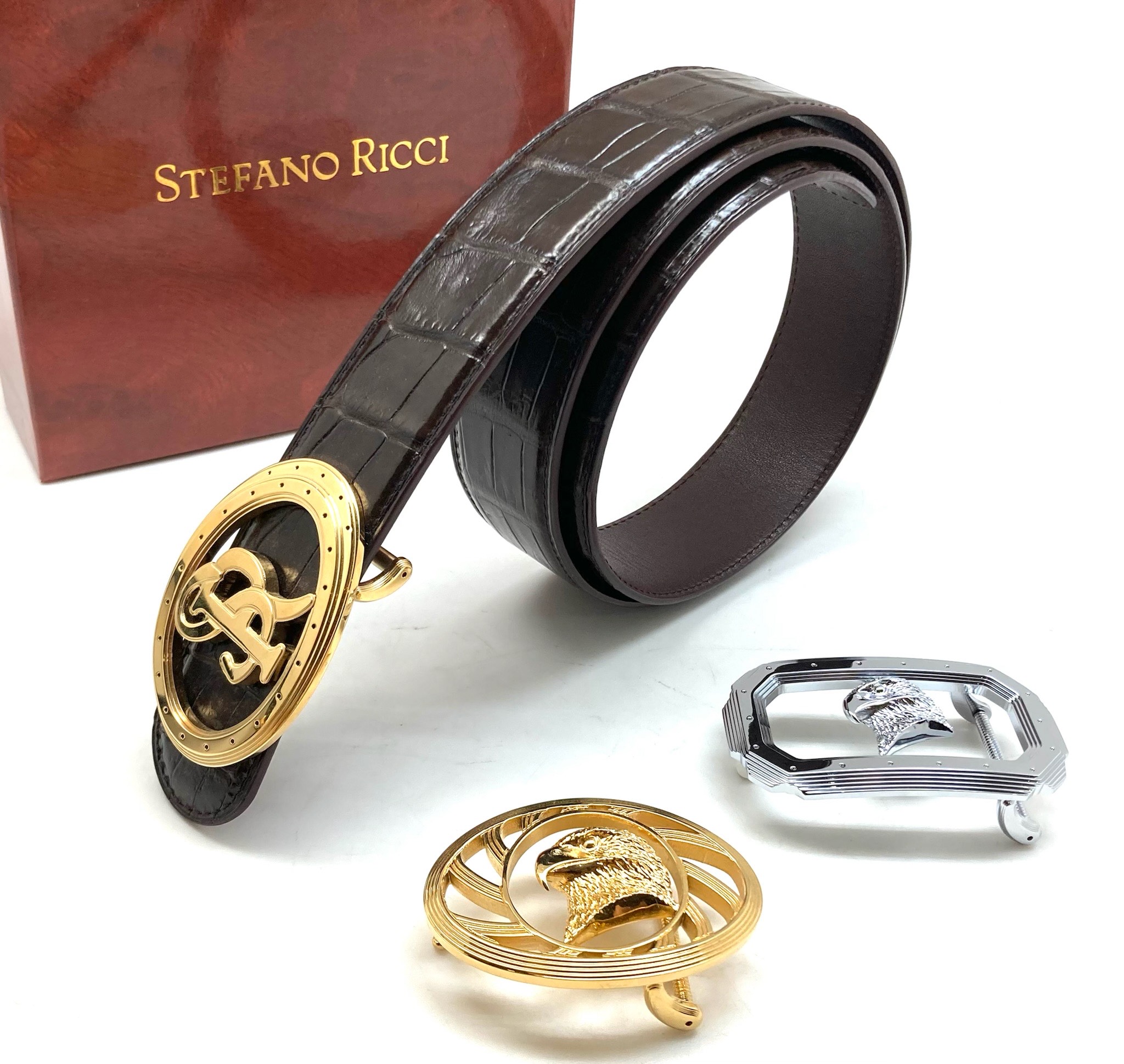SR ремень крокодил джинсовый съемная пряжка темно-коричневый