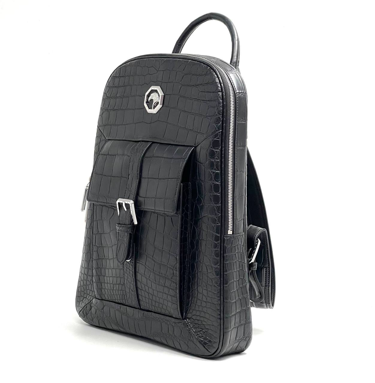 SR рюкзак тонкий из крокодила карман с пряжкой спереди черный