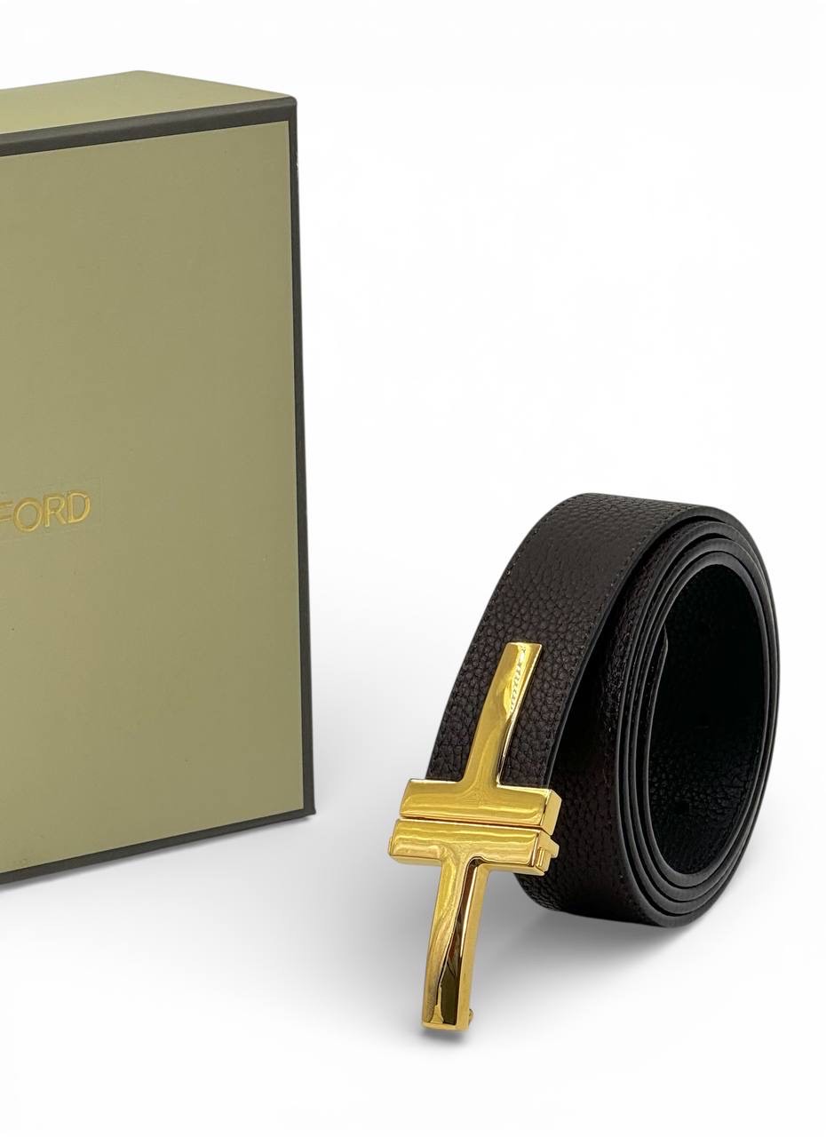 TOM FORD ремень кожа эпсом черно-коричневый пряжка эпсом