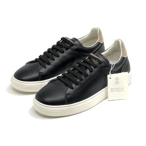 BRUNELLO кеды черные кожа коричневый задник над пяткой
