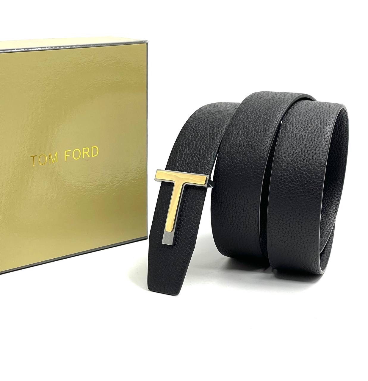 TOM FORD Ремень черно-коричневый выпуклая золотая буква Т на черном основании