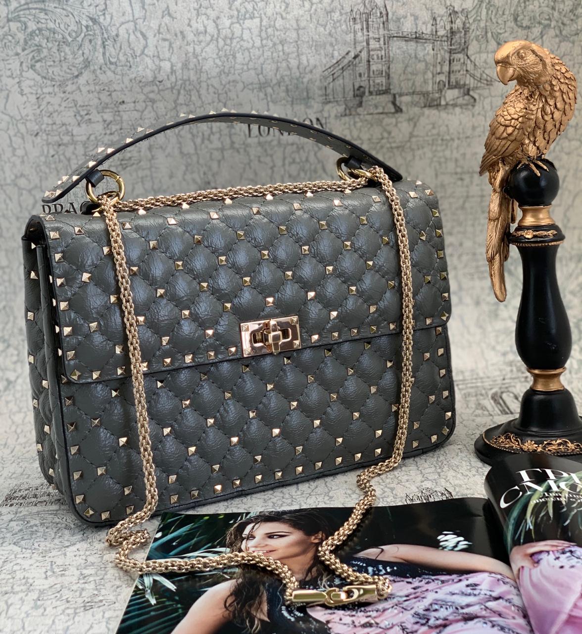 VALENTINO сумка с клапаном мятая кожа с шипами серая золото большая