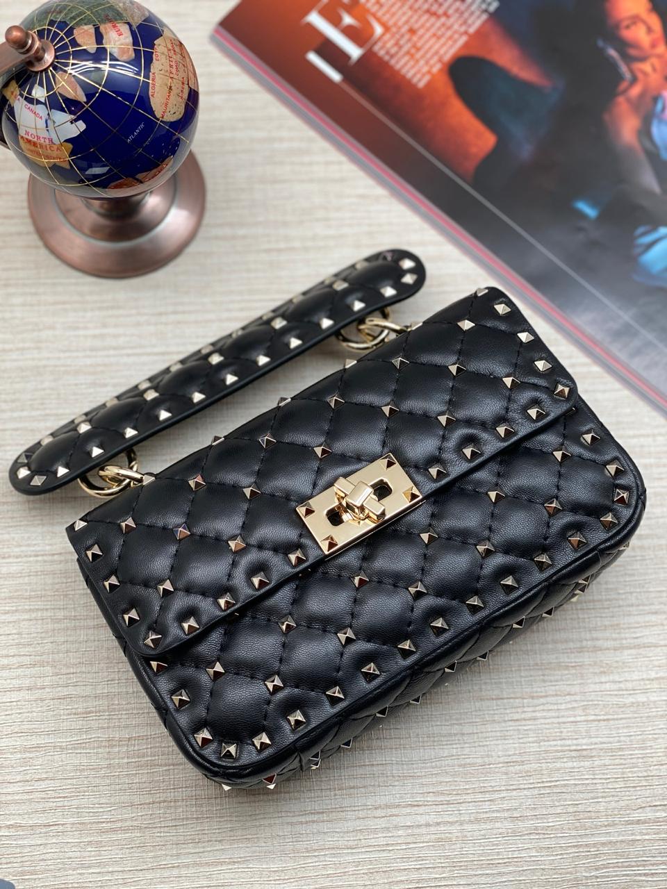 VALENTINO сумка с клапаном с шипами черная золото маленькая