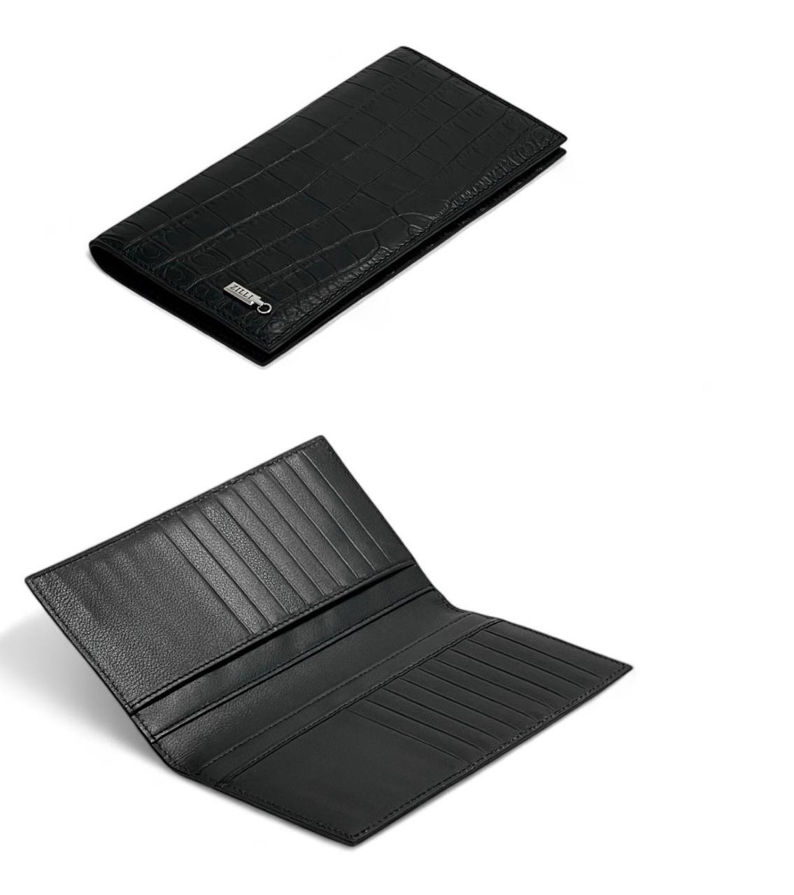 ZILLI купюрница из черной кожи крокодила логотип серебро снаружи