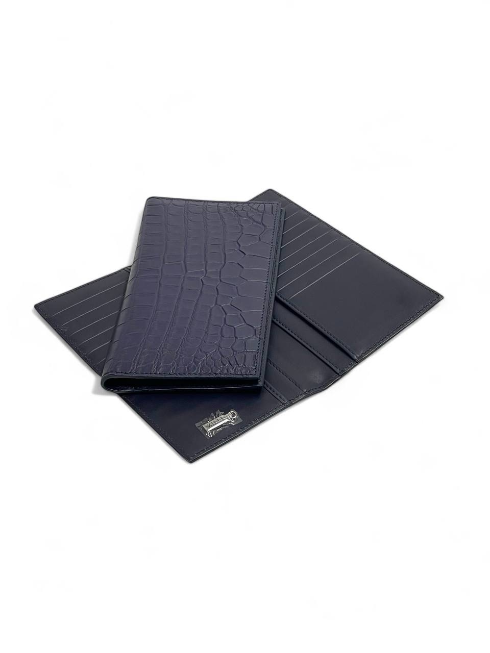 ZILLI купюрница из синей кожи крокодила логотип золото снаружи