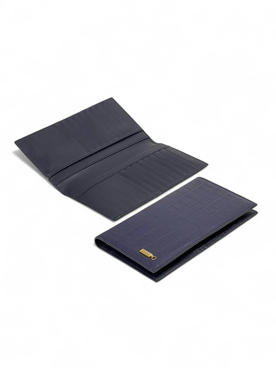 ZILLI купюрница из синей кожи крокодила логотип золото снаружи