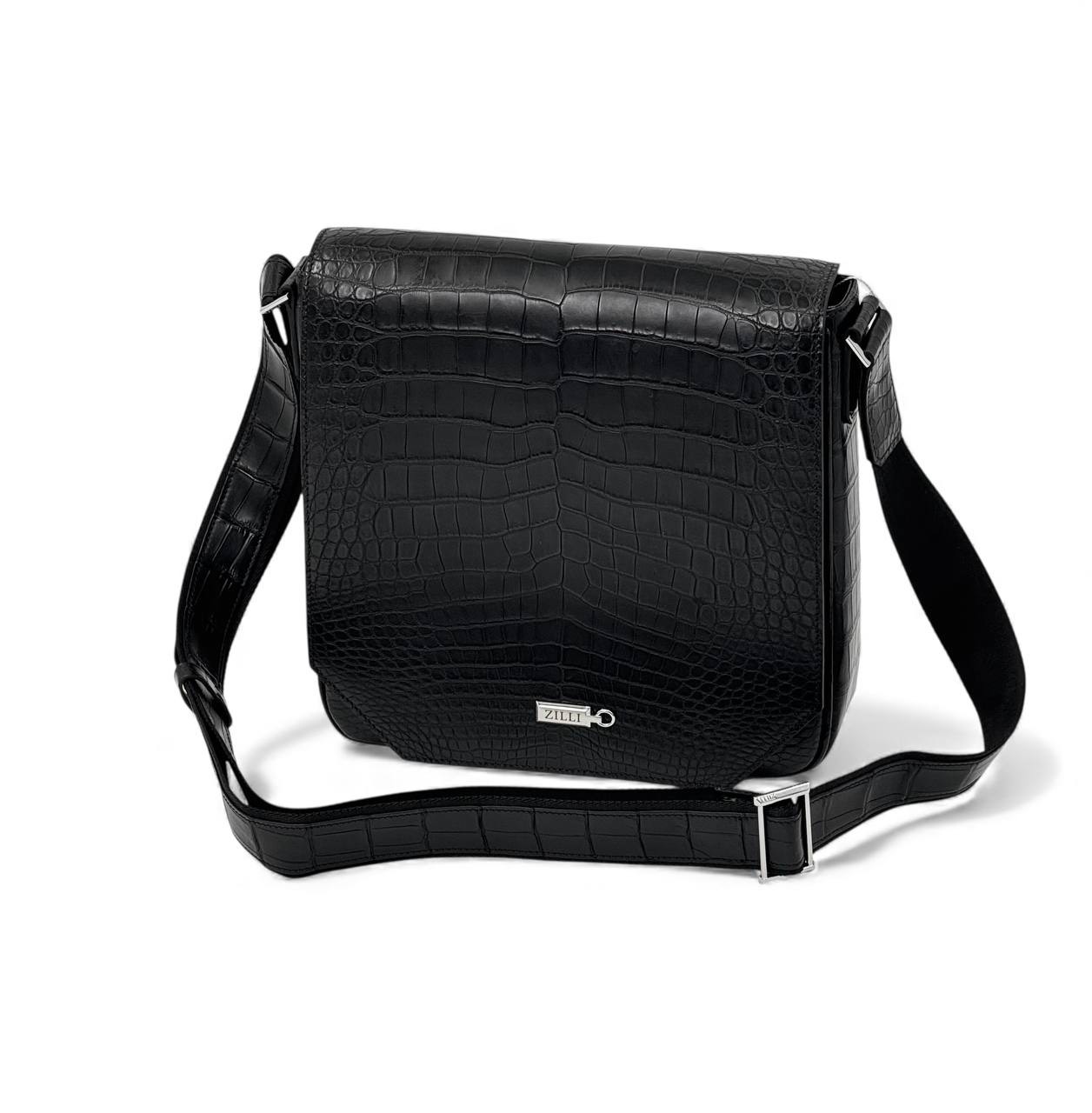 ZILLI мессенджер крокодил черный с клапаном лого серебро