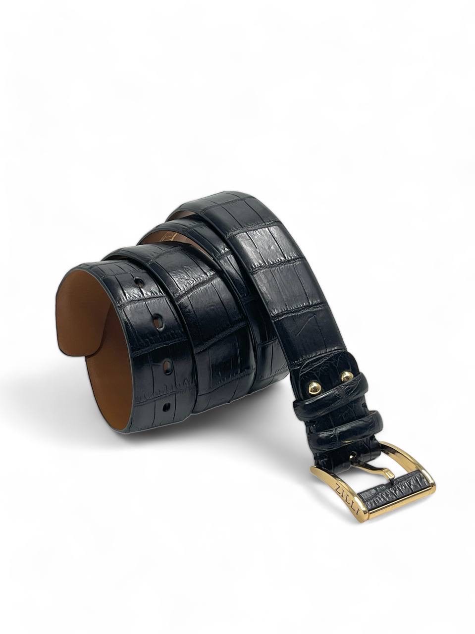 ZILLI ремень крокодил джинсовый черный пряжка золото