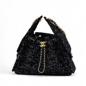 CHANEL сумка Hobo твид черная золото