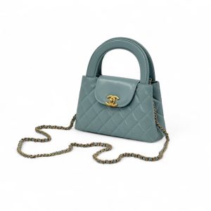 CHANEL сумка Kelly гладкая кожа в клетку голубой золото