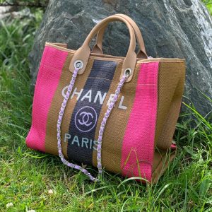 CHANEL сумка Shopping текстиль розовая + коричневая