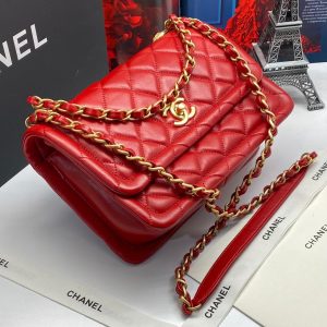 CHANEL сумка из красной гладкой кожи с твердым клапаном прямоугольная