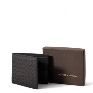 BV портмоне черное теленок в широком плетении