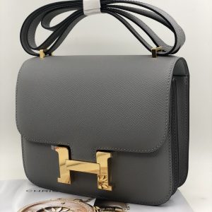 HERMES сумка Constance кожа Эпсом 18 см серая фурнитура золото