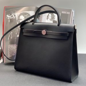 HERMES сумка Herbag гладкая кожа + текстиль черная