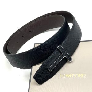 TOM FORD ремень кожа эпсом черно-коричневый пряжка эпсом